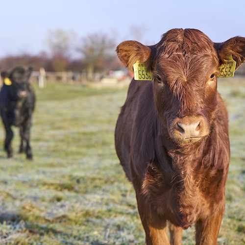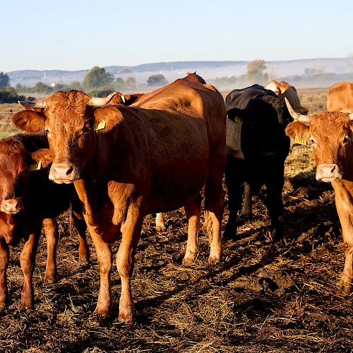 Auf der Farm leben rund 400 Rinder der Rassen Aberdeen Angus und Limousin, die für ihre hervorragende Fleischqualität bekannt sind. Ein zentrales Element unserer Philosophie ist die Mutterkuhhaltung. Die Kälber wachsen bei ihren Müttern auf und werden in den ersten Lebensmonaten ausschließlich mit deren Milch ernährt. Diese natürliche Aufzucht stärkt nicht nur das Immunsystem der Tiere, sondern sorgt auch für Ruhe, Sicherheit und ein artgerechtes Aufwachsen.